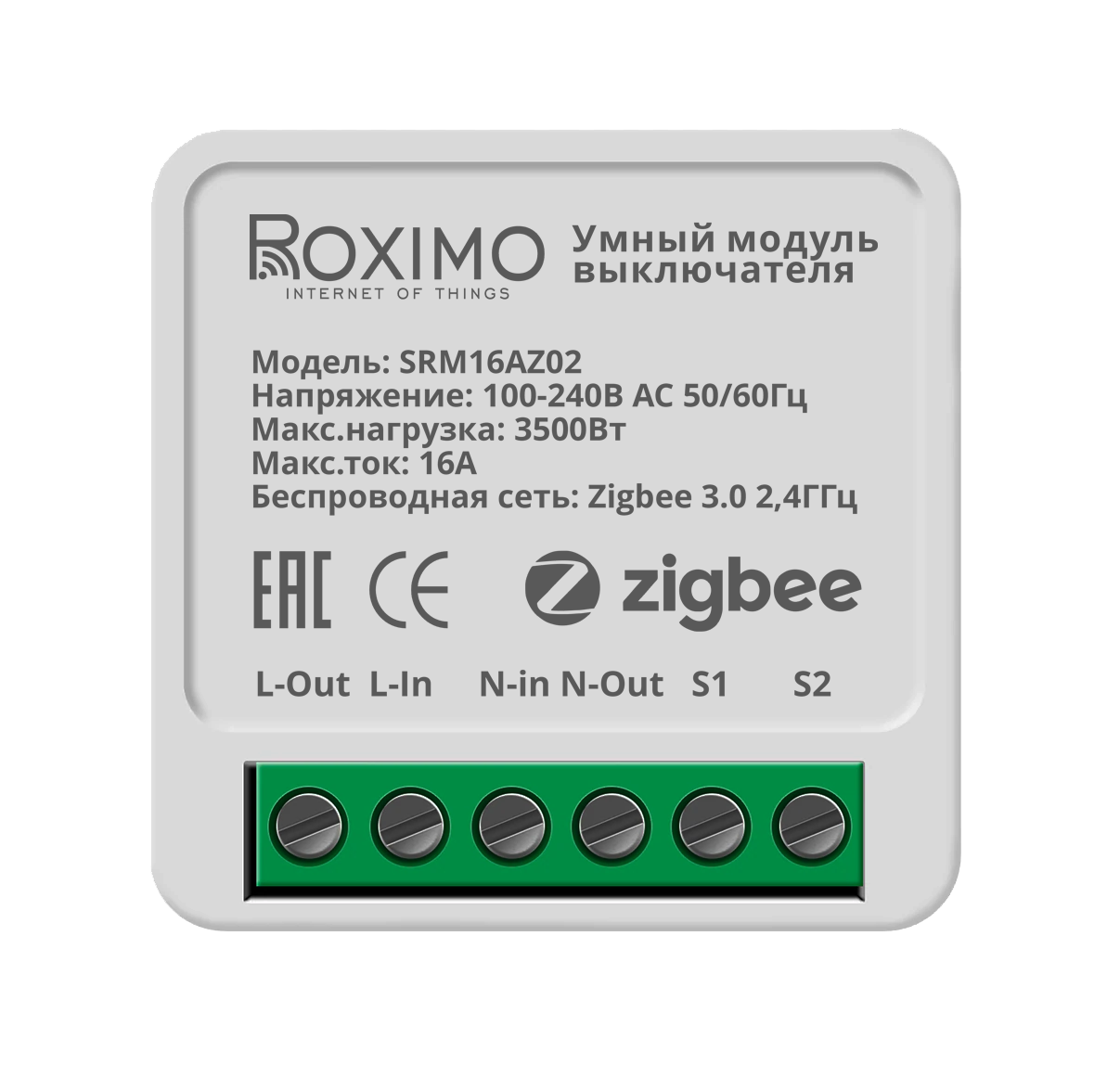 Модуль работает по технологии Zigbee, разработанной специально для устройств умного дома, что обеспечивает надежную связь всех устройств между собой и позволяет не нагружать точку доступа WiFi в доме. Для подключения устройства к сети необходим шлюз, например Roximo GWZBT01.