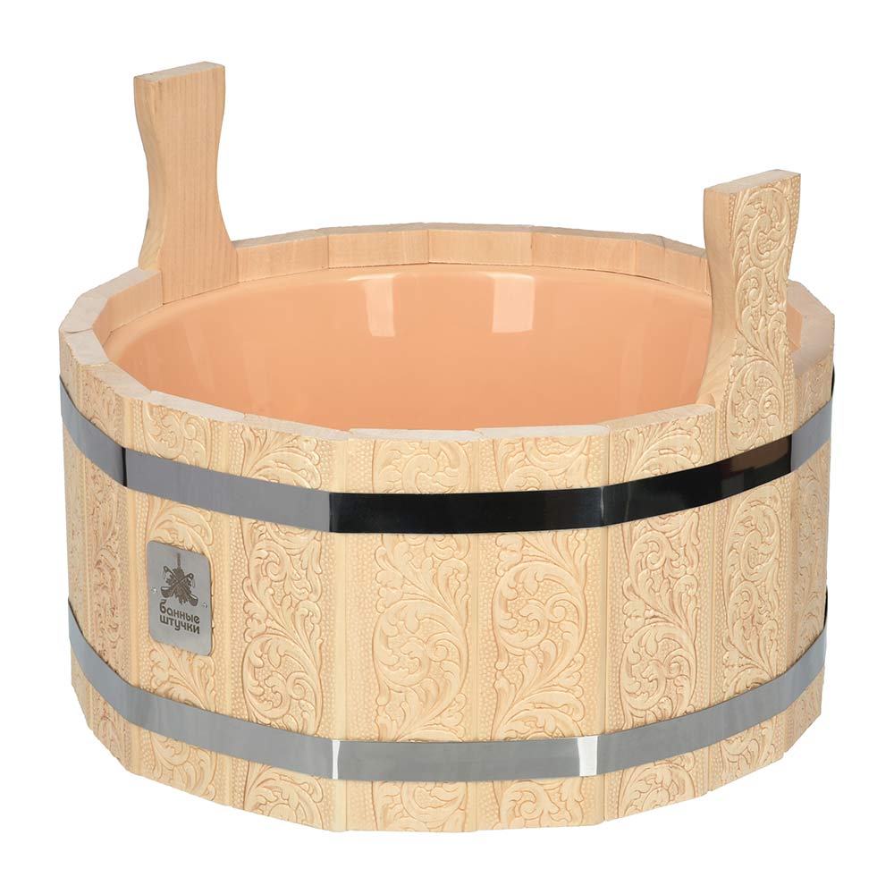 Ушат "шайка" 12 л, "Цветы", с пластиковой вставкой, система регулировки обручей, липа "Банные штучки"