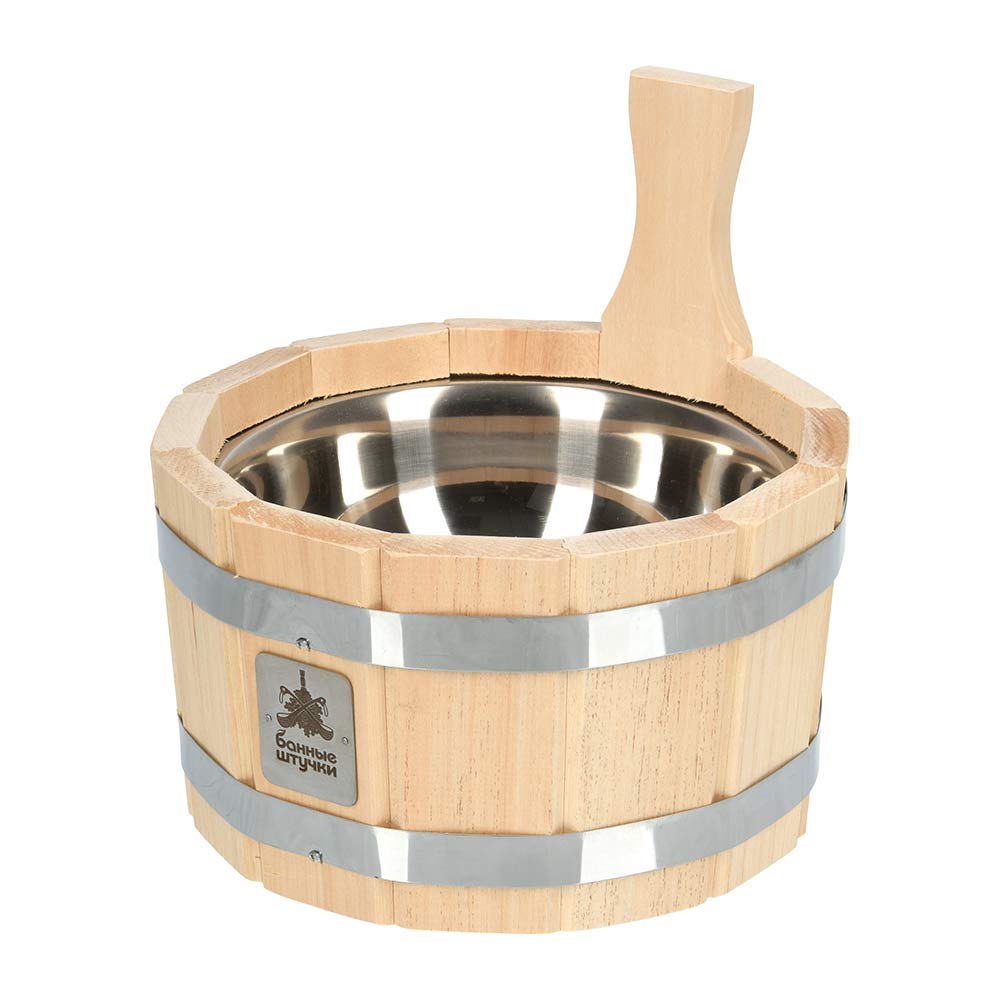 Ушат "шайка", 3,5 л, с нержавеющей вставкой, липа "Банные штучки"