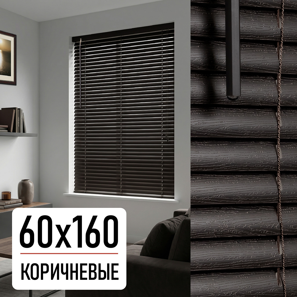 Жалюзи, пластик, коричневый, 60х160