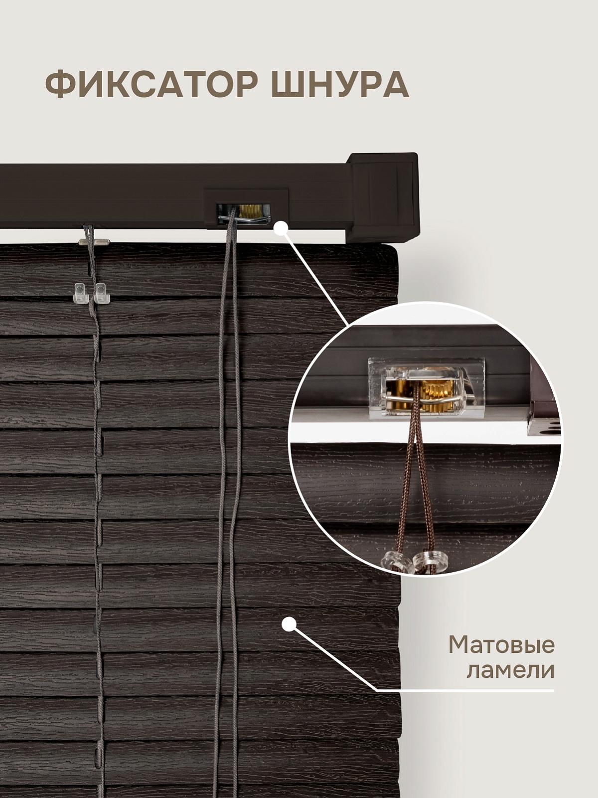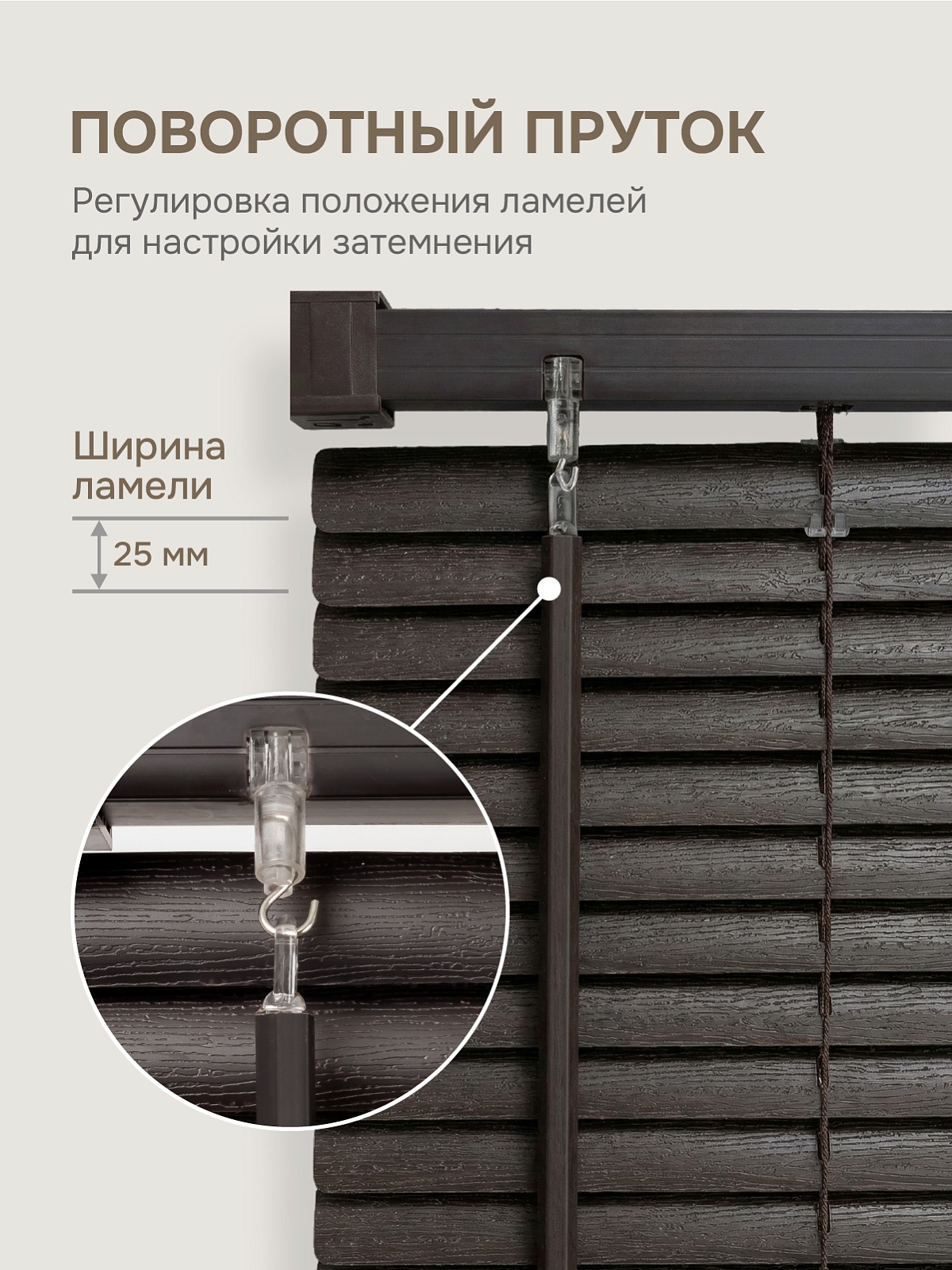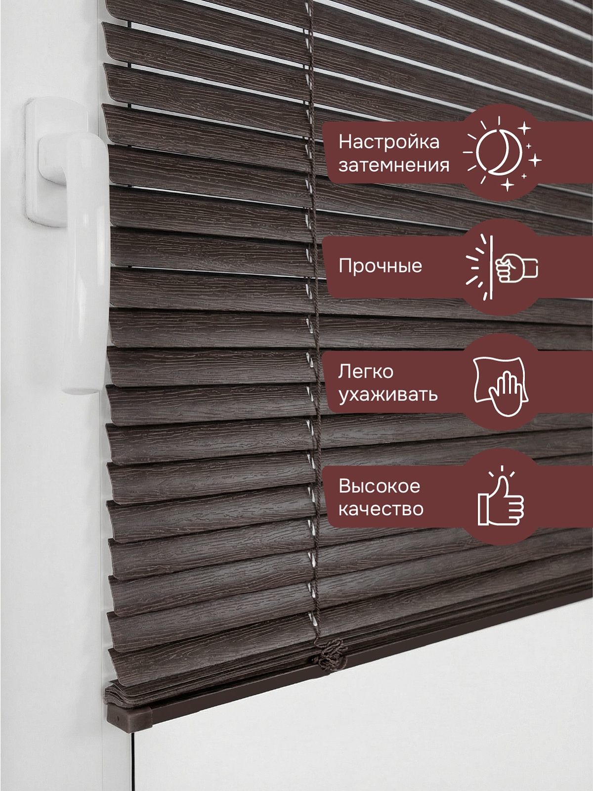 Ламели выполнены из пластика, поэтому жалюзи устойчивы к деформации.