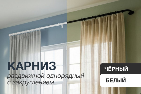 Мы рады представить нашу новую линейку раздвижных карнизов однорядного типа — идеально подходящих для современного или классического интерьера. Особенность наших карнизов — закруглённые края, которые добавляют изделию элегантность и мягкость.