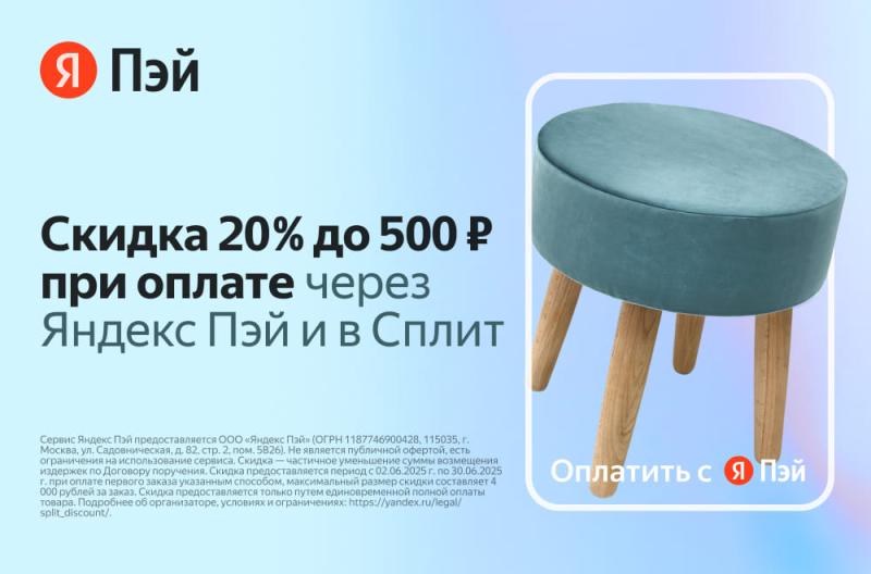 Запускаем новую акцию! Скидка 20% при оплате через Яндекс Пэй и Сплит.